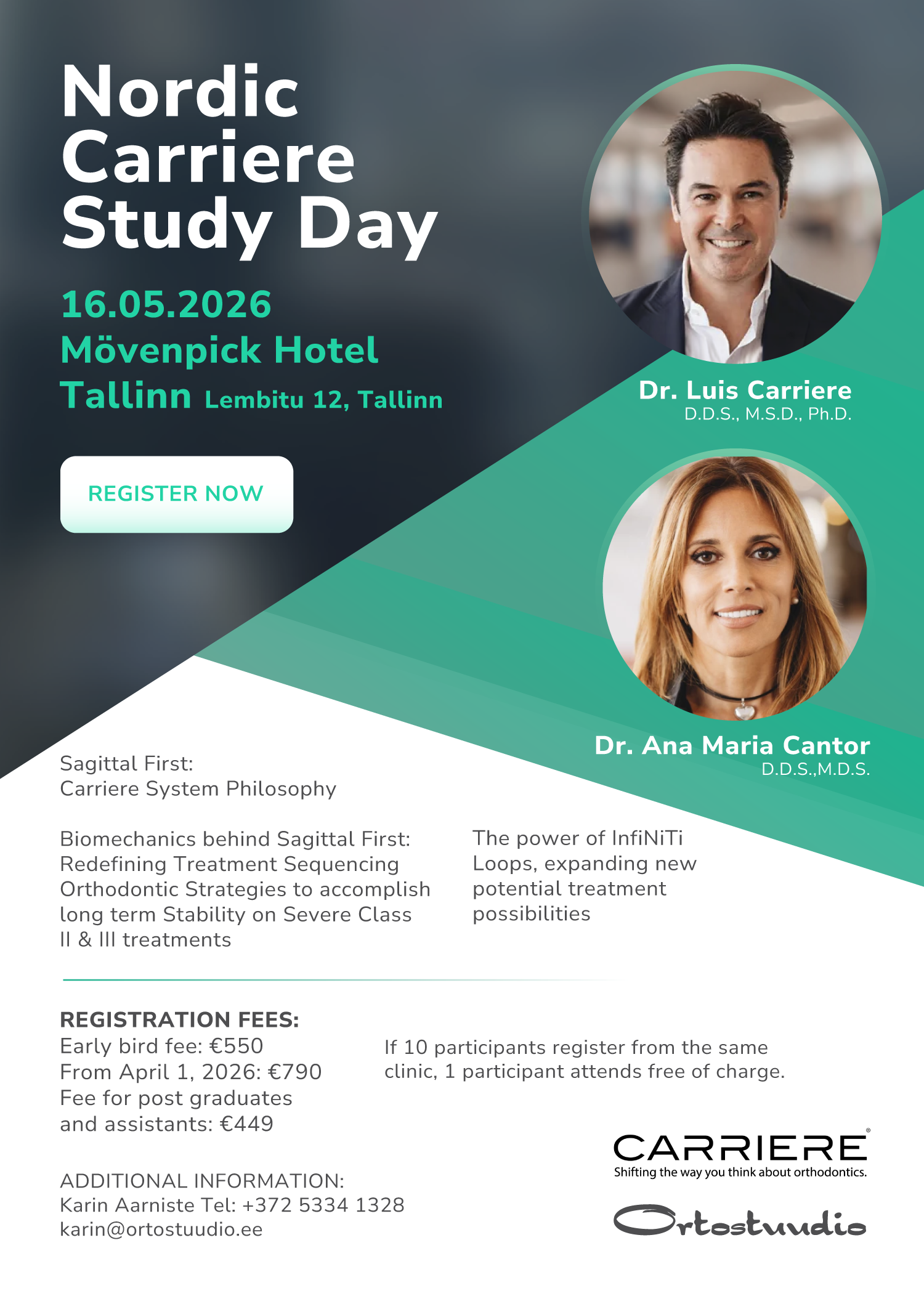 Kutsume teid osalema erakordsel ortodontilisel sündmusel Tallinnas – Nordic Carriere Study Day, kus esineb dr Luis Carrière, üks kaasaegse ortodontia mõjukamaid innovaatoreid.