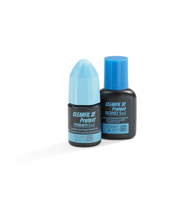 Kaheastmeline isesöövitav adhesiiv CLEARFIL™ SE Protect võimaldab teil praktiliselt kõiki restauratsioone "tulevikukindlalt" kokku liimida. Kandke lihtsalt peale isesöövitav praimer ja adhesiiv, et luua kauakestvad restauratsioonid. Antibakteriaalne adhesiiv loob selleks kõik võimalused. Isekõvastuva aktivaatori CLEARFIL™ DC Activator abil saate CLEARFIL™ SE Protecti kasutada ka tsementeerimise sidustamiseks ja köndi ülesehituseks. CLEARFIL™ SE Protecti juures on võrreldes CLEARFIL™ SE BONDiga kasutatud kahte täiendavat tehnoloogiat. Pikaajalist fluoriidi vabanemist ja MDPB- monomeeri, millel on antibakteriaalne kaviteeti puhastav toime. Kokkupuutel MDPB-monomeeriga hävitab CLEARFIL™ SE Protect bakterid. CLEARFIL™ SE Protect’i antimikroobne toime on bioloogiliselt ohutu, kuna MDPB-monomeer on fikseeritud adhesiivikihis. EELISED: Esimene ja siiani ainus isesöövitav antibakteriaalne adhesiiv maailmas; praimer sisaldab 5% antibakteriaalset MDPB-monomeeri, millel on tugev antibakteriaalne toime; katseliselt tõestatud kaheastmeline isesöövitav sidustuvus; hoiab ära operatsioonijärgset tundlikkust; kiire ja lihtne kasutamine; tugev sidustuvus dentiini ja emailiga NÄIDUSTUSED: direktsed restauratsioonid valguskõvastuvate komposiitide või kompomeeridega; kaviteetide eeltöötlemine indirektsetel restauratsioonidel; ülitundlike ja/või paljastunud juurepindade ravi; portselanist, hübriidkeraamikast või komposiidist kroonide/sildade suusisene parandamine, kasutades valguskõvastuvat komposiiti; portselanist, hübriidkeraamikast ja komposiidist valmistatud proteeside pinnatöötlus; köndi ülesehitus valguskõvastuva või kaheli kõvastuva komposiidi abil; kaviteedi töötlemine amalgaamtäidise all